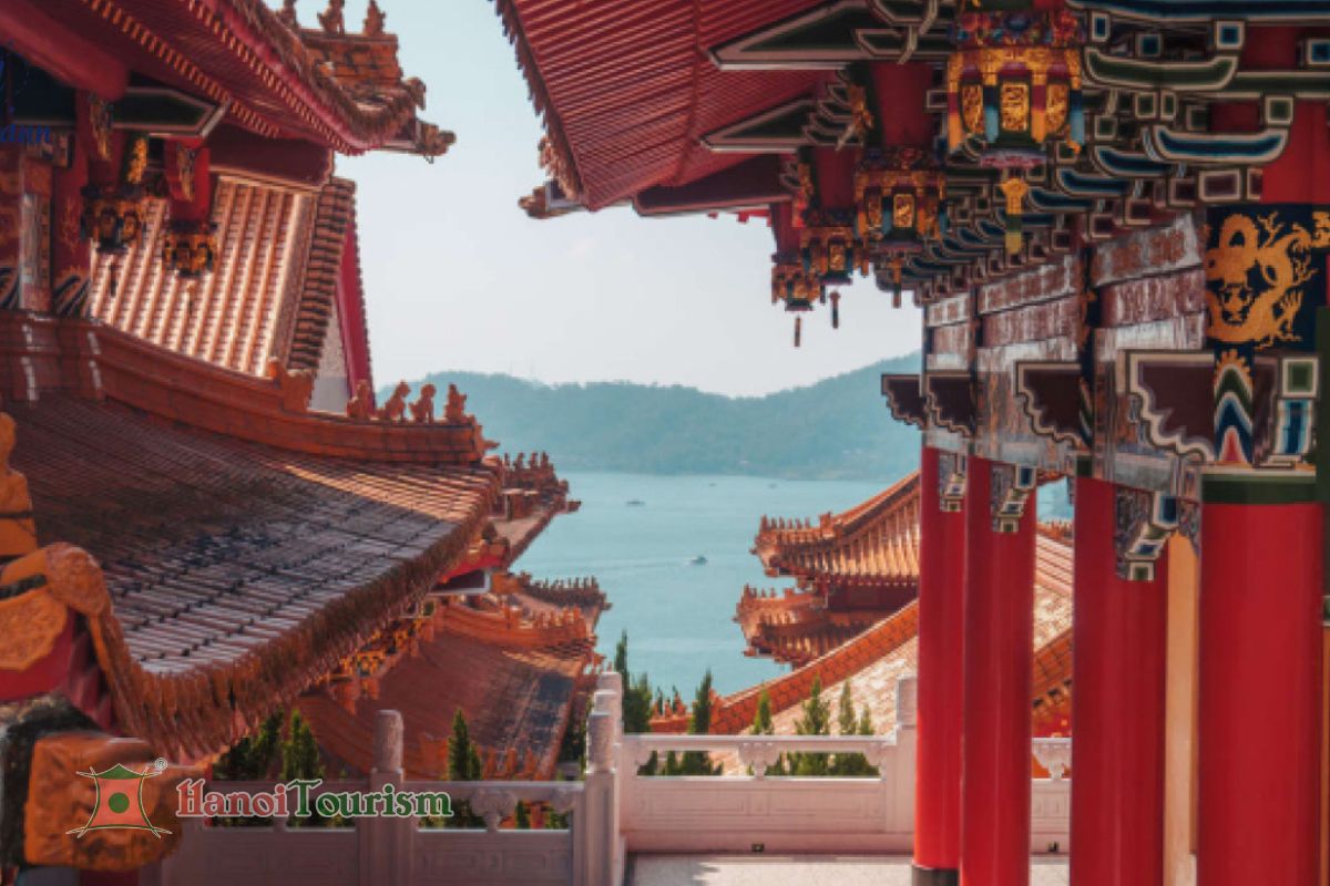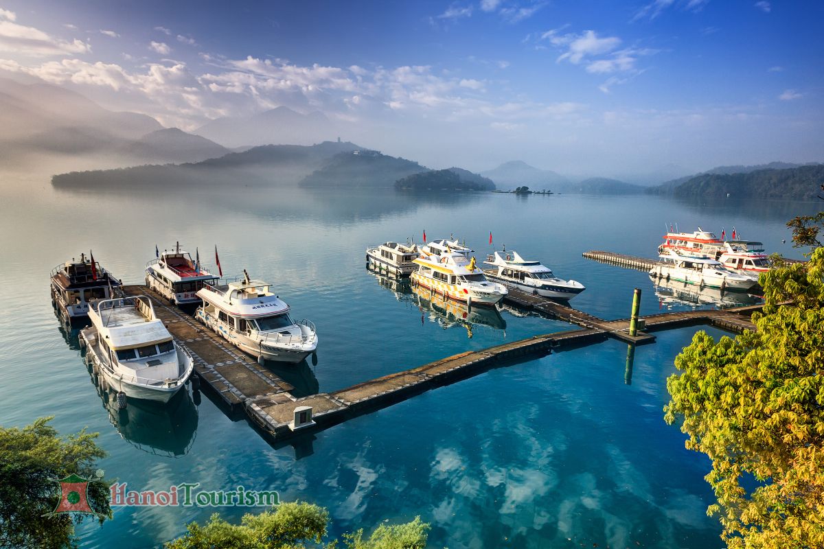 - Hồ Nhật Nguyệt: đây là hồ nước thiên nhiên lớn nhất Đài Loan với một hồ lớn và một hồ nhỏ liền nhau được bao bọc bởi màu xanh bạt ngàn của những dãy núi xung quanh, nơi đây đã từng là điểm nghỉ dưỡng ưng ý nhất của Tưởng Giới Thạch. Quý khách lên du thuyền thưởng ngoạn cảnh đẹp Hồ Nhật Nguyệt.