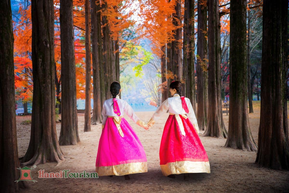 • Mặc áo Hanbok truyền thống chụp hình lưu niệm.