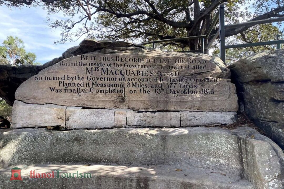 - Mrs Macquarie’s Chair –“Ghế đá của bà Macquarie” được làm từ phiến đá sa thạch năm 1810 dành tặng cho phu nhân Elizabeth của thống đốc bang New South Wales – thiếu tướng Macquarie, để bà có thể ngồi ngắm nhìn những chuyến tàu cập cảng cùng toàn cảnh bến cảng.